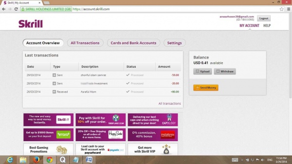 আমার skrill পেমেন্টের স্ক্রীনশট।