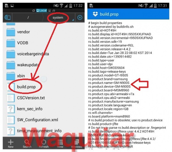 প্রথমে আপনি Es File Explorer File Managerটি ওপেন করুন । এখান থেকে Root ফোল্ডারে যান এই Root ফোল্ডারের ভিতর থেকে Build.prop টি খুঁজুন , এবং ওপেন করুন । এখানে আপনি আপনার এস৪ সংক্রান্ত অনেক ইনফরমেশান পাবেন । এগুলোকে এড়িয়ে যান এবং এখান থেকে ro.product.name এবং ro.product.deviceটাকে খুঁজে বার করুন । এবং এই দুটোকে Remane করুন SM-N900S এ। তারপরBuild.prop টাকে সেভ করে মোবাইলটা রিস্টার্ট করুন ।