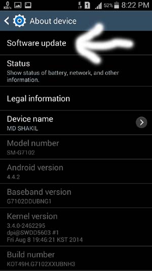 নিবেন। প্রথমে সেটিং এগিয়ে about যান। তারপর নিচের মত software update এ ক্লিক করুন।