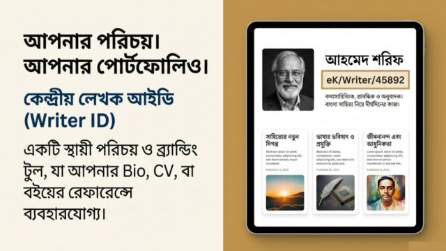 ১. স্থায়ী কেন্দ্রীয় লেখক আইডি (Writer ID): এটি আপনার Bio, CV, গবেষণা, বই বা যেকোনো রেফারেন্সে ব্যবহারযোগ্য একটি 'স্থায়ী পরিচয় ও ব্র্যান্ডিং টুল' হিসেবে কাজ করবে। লেখা ছড়িয়ে নয়—এক জায়গায়, পরিচয়ের ভেতরে গেঁথে ফেলুন।