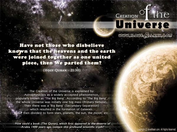 এতে প্রমাণিত হয় এক বিশাল বিস্ফোরণের মাধ্যমেই এই মহাজগতের সুচনা যা আমরা কুরআন কারীমে ১৪০০ বছর পূর্বে জানতে পারি।