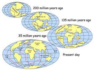 আর এভাবেই নড়াচড়ার কারণে একটি আরেকটি থেকে দূরে সরে যায়। Wegner এর মৃত্যুর পঞ্চাশ বছর পর ১৯৮০ এর দশকে ভূ-তত্ত্ববিদগণ Wegner এর এই প্রস্তাবটি সঠিক ছিল বলে বুঝতে পারেন। ”১৯১৫ সালে Wegner একটি আর্টিকলে নির্দেশ করেন যে, প্রায় ৫০০ মিলিয়ন বছর আগে ভুপৃষ্ঠের সলভাগসমূহ একসঙ্গে সংযুক্ত অবস্থায় ছিল। আর এই বৃহৎম স্থলভাগটি পৃথিবীর দক্ষিণ মের তে ছিল Pangaea নামে।প্রায় ১৮০ মিলিয়ন বছর পূর্বে Pangaea দুটি ভাগে ভাগ হয়ে বিভিন্ন দিকে ভেসে চলে যায়। এদের মাঝে Gondwana নামে বৃহৎ একটি মহাদেশ ছিল, যাতে বিদ্যমান ছিল আফ্রিকা, অষ্ট্রেলিয়া, এন্টার্টিকা আর ইন্ডিয়া। দ্বিতীয় অংশটি ছিল Laurasia নামে, যেথায় অবসিত ছিল ইউরোপ, উত্তর আমেরিকা আর ইন্ডিয়া বাদে এশিয়া। এই পৃথকীকরনের পর ১৫০ মিলিয়ন বছর ধরে Gondwana আর Laurasia ক্ষুদ্র ক্ষুদ্র ভাগে আলাদা হয়ে যায়।” Sheets, Gardner, and Howe, General Science, 305.