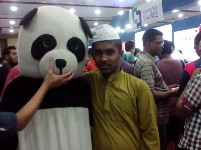 কিন্তু তারা বলল যে, Class 10 পর্যন্ত ফ্রি এনট্রি, কিন্তু আমি পড়ি দ্বাদশ শ্রেনিতে। যাইহোক, অবশেষে আমার সাথে যে বড় ভাই গিয়েছিলেন, তিনিই টিকেট কিনে দিলেন। মেলায় প্রবেশ করার পরে এক অন্যরকম আনন্দ অনুভূত হল। এ মেলায় অনেক ব্র্যান্ডের ল্যাপটপের পাশাপাশি Smartphone এর প্রদর্শনীও করা হয়েছে। Asus, hp, Dell, Acer, Lenovo সহ আরো অনেক ব্র্যান্ড ল্যাপটপের প্রদর্শনী করেছে। এছাড়া Lava কোম্পানির Smartphone গুলো দেখে চরম মনে হয়েছে। আমরা কয়েকটি সেলফিও তুলেছি। সবচেয়ে মজা লেগেছে, Panda পোশাক পরিহিত মানুষের সাথে সেলফি তুলে। মেলায় অবশ্য পরিচিত এক Uncle এর সাথেও দেখা হয়ে গেল। তিনিও আমাদেরকে দেখে খুশি হল এবং মেলা ঘুরে দেখতে বলল। Acer এর স্টলে Racing Game খেলেছি মনমত। যাইহোক, আমি আমাদের আনন্দের মুহূর্তের কয়েকটি ছবি আপনাদের সাথে শেয়ার করে দিলাম।আশা করি, আপনাদের কাছে টিউনটি ভাল লেগেছে এবং আপনার টিউনটি শেয়ার করে দিবেন। মেলা শেষ হবে আগামীকাল রবিবার (১৫ই মে)।