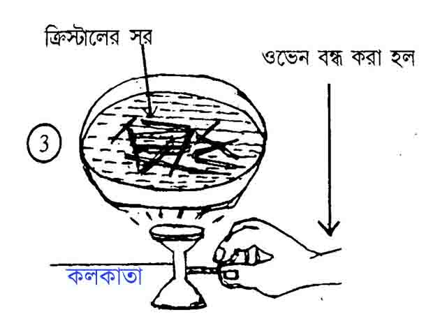 ১০ মিনিট পর দেখবেন...তরল মিশ্রণের উপর পাতলা ক্রিস্টালের স্তর পড়েছে..অনেকটা দুধের সরের মত..তাহলে জানবেন হয়ে গেছে....