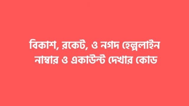 হে বন্ধুরা মাঝে মাঝে আমাদের বিকাশ, রকেট, ও নগদ হেল্পলাইন নাম্বার ও একাউন্ট দেখার কোড এর বেশ প্রয়োজন হয়। বিশেষ করে নতুন গ্রহকদের।