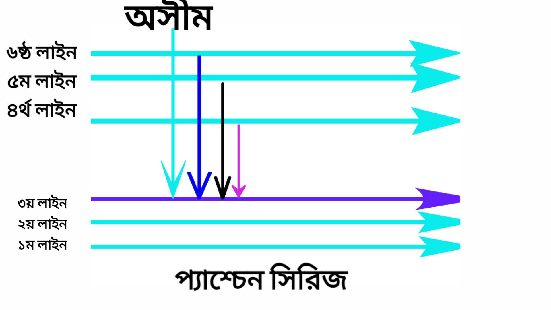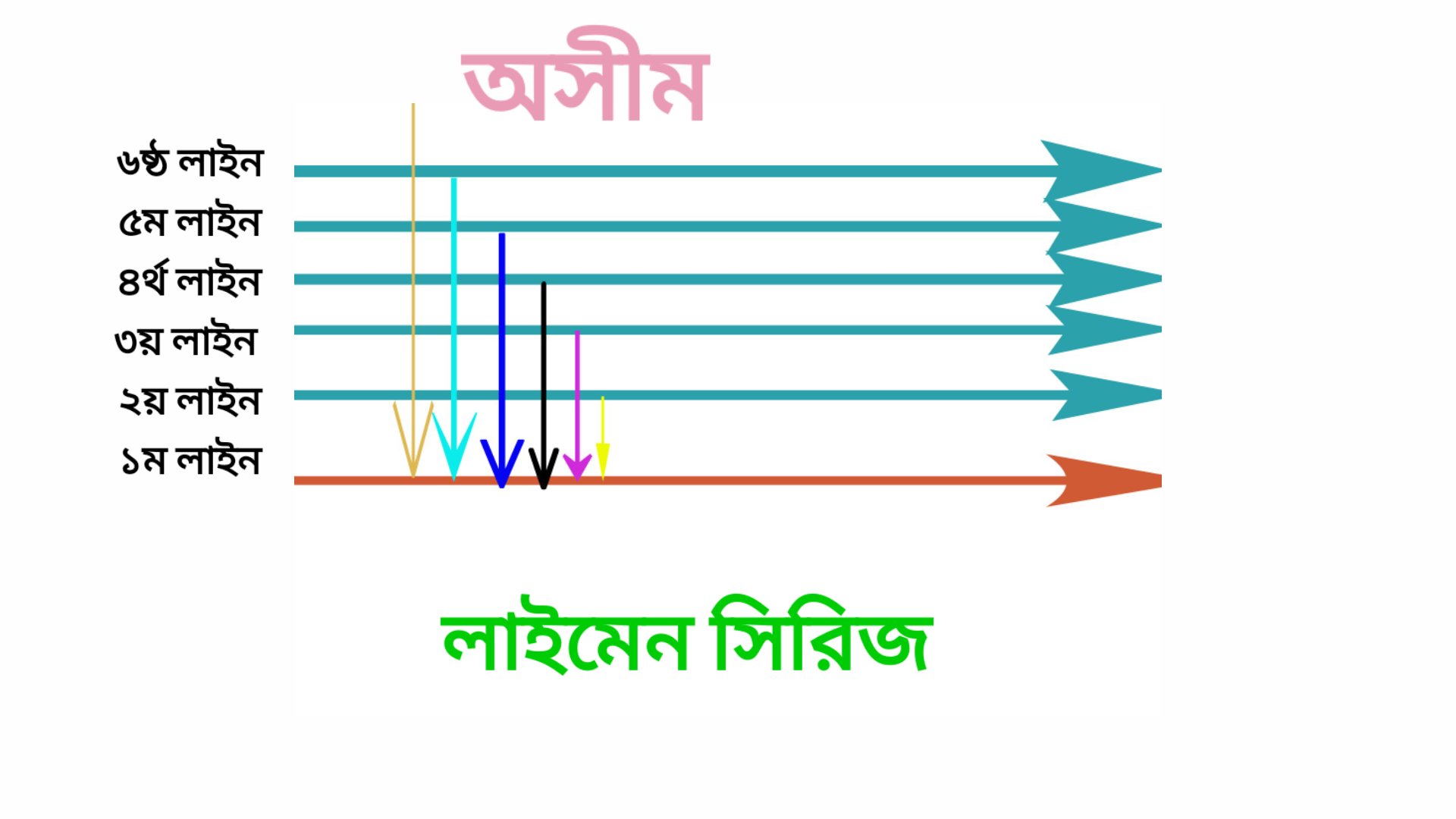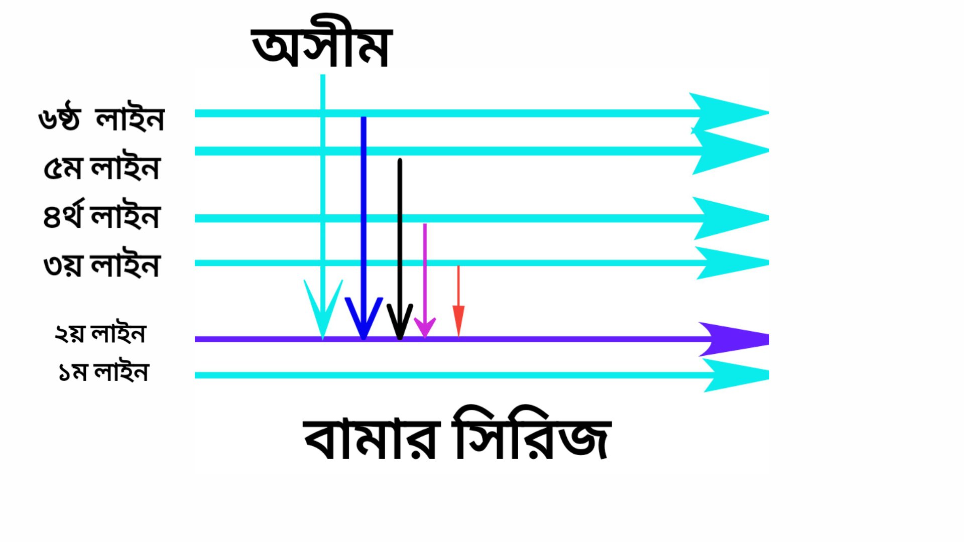 যখন পরমাণুর ইলেকট্রন উচ্চতর শক্তিস্তর থেকে নিম্নতর শক্তিস্তরে আসে তখন নির্দিষ্ট পরিমাণ শক্তির বিকিরণ হয়। পরমাণুর ইলেকট্রন উচ্চতর যে কোন শক্তি স্তর থেকে নিম্নতর যেকোনো শক্তিস্তরে আসতে পারে। যেমন পরমাণুর ইলেকট্রন অসীম থেকে ১ম, ২য়, ৩য় ৪র্থ, ৫ম, ৬ষ্ঠ যেকোনো শক্তিস্তরে আসতে পারে অথবা পরমাণুর ইলেকট্রন ৬ষ্ঠ শক্তিস্তর ১ম, ২য়, ৩য়, ৪র্থ, ৫ম শক্তিস্তরে আসতে পারে।