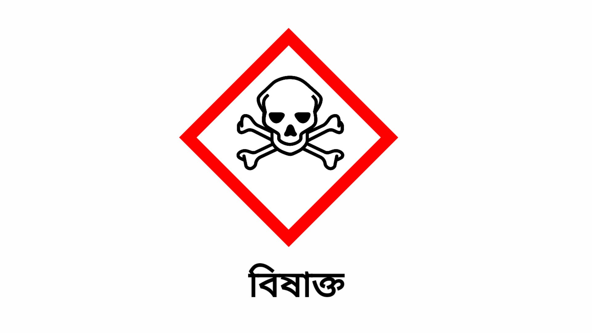 কোন পাত্রের উপর উপরিক্ত চিহ্ন দেখলে বুঝতে হবে বিষাক্ত রাসায়নিক পদার্থ। নিঃশ্বাসে, ত্বকে লাগলে অথবা খেলে মৃত্যু হতে পারে। এ ধরনের পদার্থ তালাবদ্ধ স্থানে সংরক্ষণ করতে হবে।