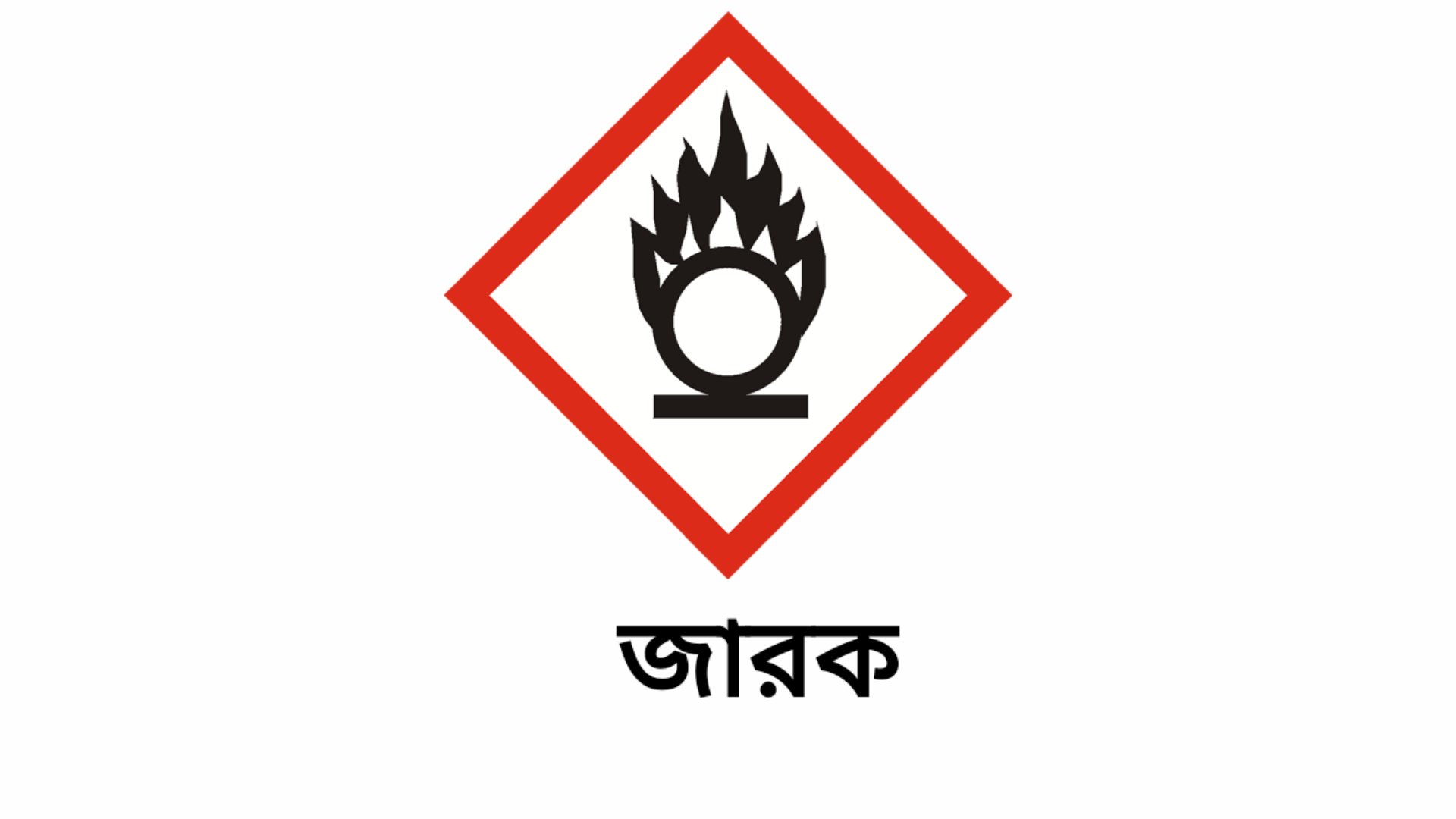 এ ধরনের চিহ্ন কোনো পাত্রের উপর দেখলে বুঝতে হবে এটি রাসায়নিক জারক পদার্থ। ইহা নিশ্বাসে গেলে শ্বাসকষ্ট হতে পারে তকে লাগলে ক্ষত হতে পারে। সাবধানে ব্যবহার করা। জারন বিজারন করতে পারে না এমন পাত্রে সংরক্ষণ করা।