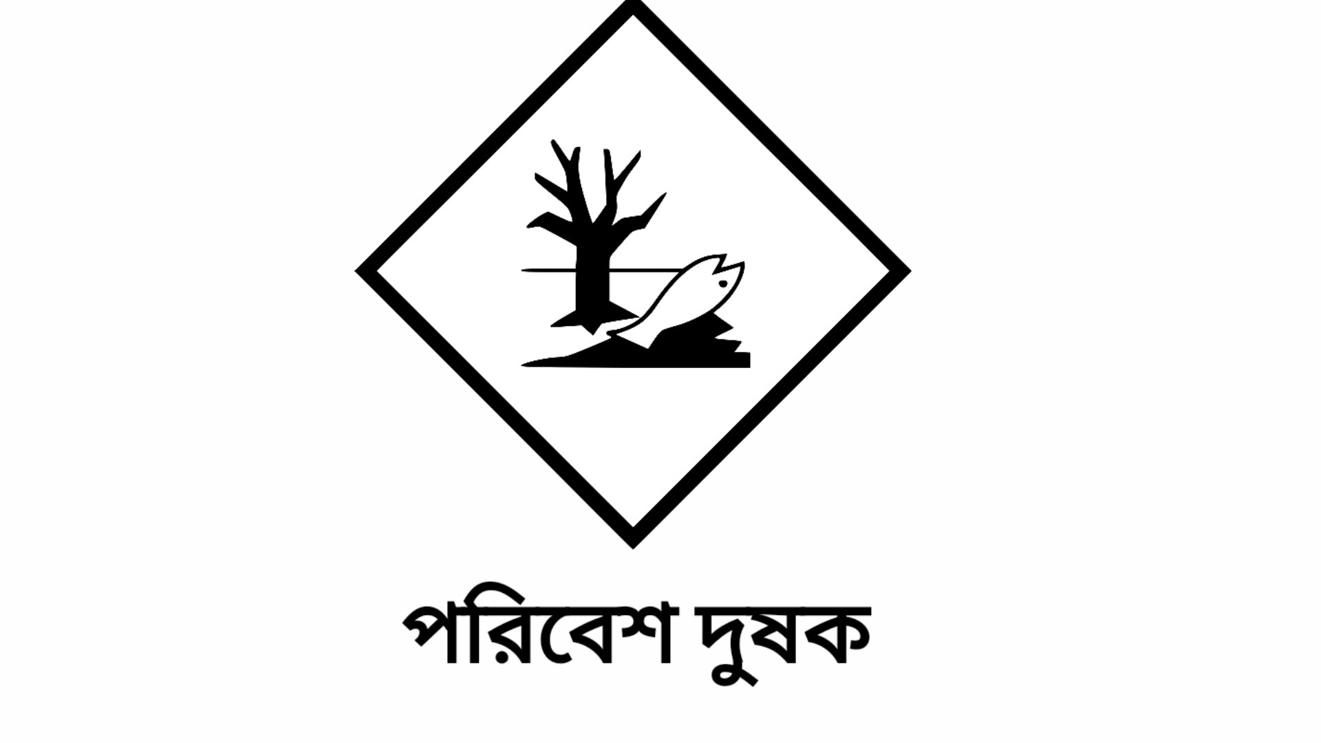 এ ধরনের চিহ্ন কোনো পাত্রের উপর দেখলে বুঝতে হবে এটি পরিবেশ ও জলজ জীবের জন্য মারাত্নক ক্ষতিকর। যেমনঃ তারপিন তেল, বিভিন্ন ধরনের কীটনাশক ইত্যাদি। এ ধরনের পদার্থ নদীনালার পানিতে মিশতে দেয়া যাবে না।