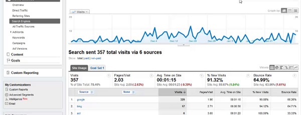 এখন আবারো উপরের ছবির দিকে লক্ষ করুন এবং Search Engine ট্যাবে যান তাহলে আপনি আপনার সাইটে কতজন ভিজিটর কোথা থেকে আসছে এগুলো জানতে পারবেন।