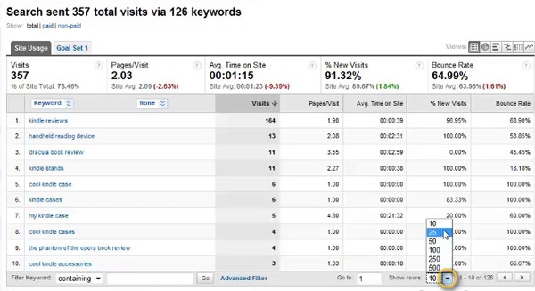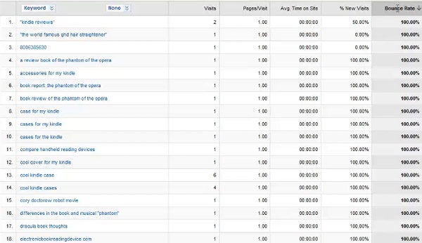এখন লক্ষ করুন এখানে কিছু কিওয়ার্ড জন্য শুধুমাত্র ১জন ভিজিটর আসছে এবং আপনার goal গুলো পূরণ হওয়াতে 200% গোল কনভারশন রেট দেখাচ্ছে, তারমানে এই নয় যে যেই আপনার সাইট এই কিওয়ার্ড এর মাধ্যমে ভিজিট করবে সেই আপনার goal পূরন করবে। ভিজিটর বাড়ার সাথে সাথে এই success rate ও কমবে। যেমন আমাদের কিওয়ার্ড kindle reviews এর জন্য লক্ষ করলেই আপনি এটার কারণ বুঝতে পারবেন। তাই এসব Value analysis করার সময় নিজের বুদ্ধির ব্যবহার করুন। এভাবে ধীরে ধীরে সময়ের সাথে সাথে আপনার সাইটের ভিজিটর বাড়তে থাকবে। আর যদি না বাড়ে তাহলে analytics থেকে কারণ বের করার চেষ্টা করুন। সম্ভব হলে প্রতি মাসে ১বার করে analytics এর ডাটা গুলো বিশ্লেষণ করুন।