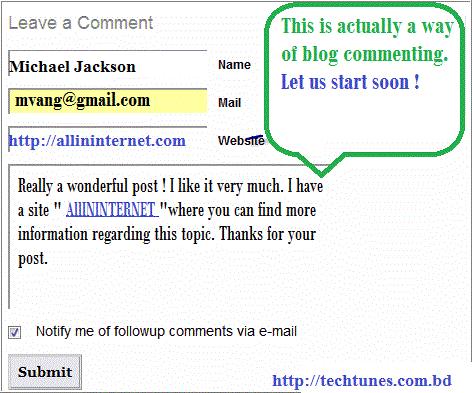 আপনারা আরো বিস্তারিত জানতে চাইলে এই পোস্টটি Making Back Links Through Blog Commenting পড়তে পারেন । কোন কিছু বুঝতে না পারলে অবশ্যই কমেন্টস করে জানাবেন, আমি চেস্টা করবো উত্তর দেয়ার জন্য ।