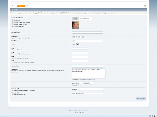 এভাবে আপনার সিগনেচার ফিল্ডে [url="http://internet.com"] Super Online Earning Tips [/url] বি বি কোড টা বসানোর পরে Change Profile Tab এ ক্লিক করুন, আপনার সিগনেচার টি তৈরি হয়ে যাবে।