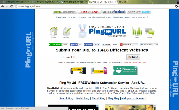 তারপর ...... Enter URL এ আপনার ওয়াপ সাইটের নাম টি দিয়ে submit করেন...।