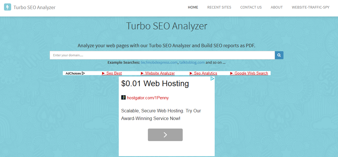 ওয়েবপেজ টির নাম Turbo SEO Analyzer ।এর মাধ্যমে একটি কিছু Interesting অ্যান্ড ইম্পরট্যান্ট Features অতি অল্প সময়ে জানতে পারা যায়ে, যেমন ধরুন :-