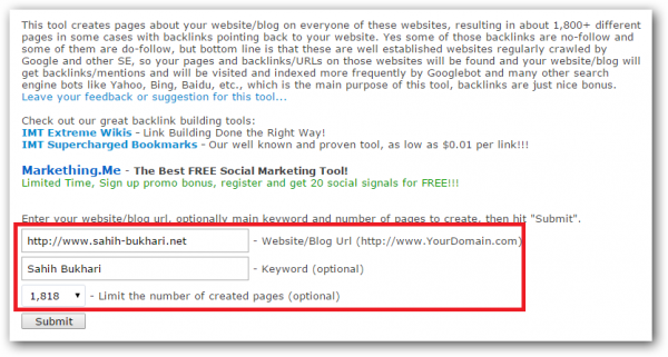 আজ আমি আপনাদেরকে দেখাব ফ্রীতে কিভাবে আপনার ওয়েবসাইটের জন্য ১৮০০+ সাইটে ব্যাকলিংক তৈরি করবেন তাও আবার একটি সাইটের মাধমে । যারা পুরাতন তাদের হয়তোবা এই পদ্ধতিটা জানা আছে, যারা জানেন না তাদের জন্যই আমার আজকের এই টিউন । তাহলে চলুন সময় নষ্ট না করে কাজ শুরু করে দিই ।