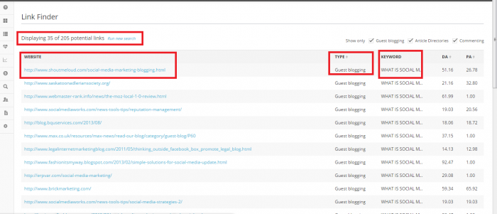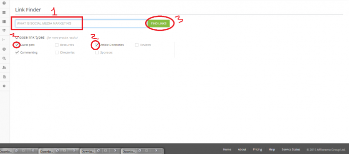 ৫. তারপর বক্স এ আপনার Keyword প্রবেশ করান। আপনি যা চাচ্ছেন অর্থাৎ Guest Post, Article তা চেক বক্স এ ক্লিক করুন। তারপর Finds Link এ ক্লিক করুন।