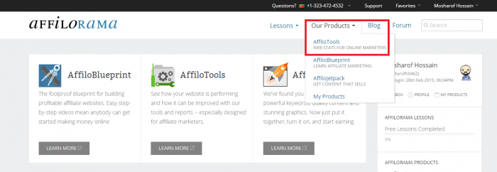 ২। তারপর Our Products থেকে AffiloTools এ যান। স্ক্রিনশট দেখুন
