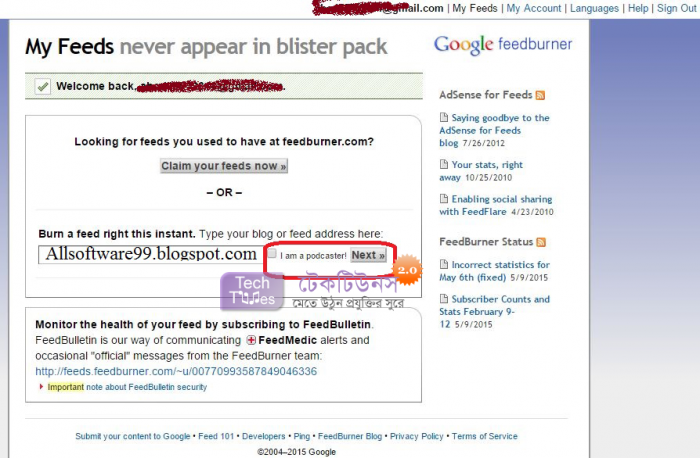 আসসালামু আলাইকুম সবাই কেমন আছেন আশা করি ভালই আছেন। আজ আলোচনা করবো কিভাবে আপনার ওয়েবসাইট কে ফিডবার্নার এ সাবমিট করবেন। ফিডবার্নার এ ওয়েবসাইট সাবমিট এটা এসইও অংশ। ওয়েবসাইট ফিডবার্নার এ সাবমিট করতে হলে আপনার একটি ইমেল আইডি লাগবে, প্রথমে আপনি আপনার ইমেল আইডিতে লগইন করুন। এবার এই লিংকে প্রবেশ করুন। নিচের মত দেখতে পাবেন।