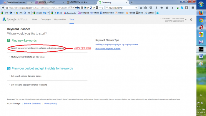 যেভাবে কী-ওয়ার্ড রিসার্চ করতে হয়ঃ কী-ওয়ার্ড রিসার্চ করার আগে আপনাকে ভাল মানের কী-ওয়ার্ড নির্বাচন করতে হবে। কী-ওয়ার্ড নির্বাচনের জন্য অনেক সাইট আসে কিন্তু আমি আপনাদেরকে Google Keyword Planar টুলটি ব্যবহার করার জন্য Suggest করবো। কারন Google Keyword Planar গুগলের নিজস্ব টুল তাই এর Quality নিয়ে কোন চিন্তা থাকেনা।