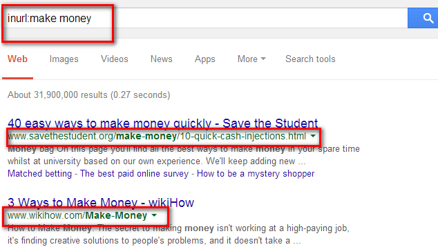 এর দ্বারা আপনি এমন ওয়েবসাইট গুলার ই SEARCH RESULT পাবেন যাদের URL এ আপনার কাঙ্ক্ষিত Search query টি আছে। নিছের ছবি টি লক্ষ করুন –