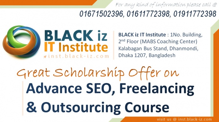BLACK iz IT Institute কর্তিক আয়োজিত এই অ্যাডভান্স এসইও কোর্সে যে কেউ অনলাইনে রেজিস্ট্রেশন করতে পারবেন, অনলাইনের রেজিস্ট্রেসন করতে এখানে ক্লিক করুন।