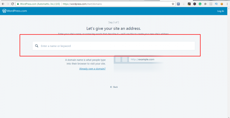 আপনার ডোমেইন নামটি এখানে টাইপ করুন।exact match keyword ভুলেও টাইপ করবেন না।আপনার নিশ যদি হয় vacuum cleaner আপনি ডোমেইনটি নিতে পারেন Vacuuminguide2020.wordpress.com .