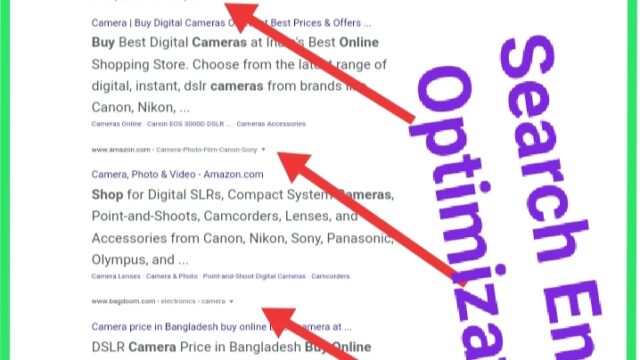 আমরা ছবিটিতে দেখতে পাচ্ছি তীর মার্ক দিয়ে চিহ্নিত করা website গুলোর নাম এবং উপরে দেখুন search box-এ buy camara online এটা লিখে search করা হয়েছে, যার অর্থ অনলাইন থেকে ক্যামেরা কিনুন।