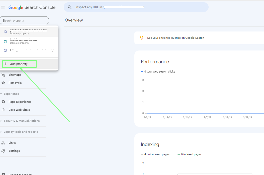 প্রথমে Google Search Console এ যান এবং উপরে বামপাশ থেকে Property সিলেক্ট করুন।