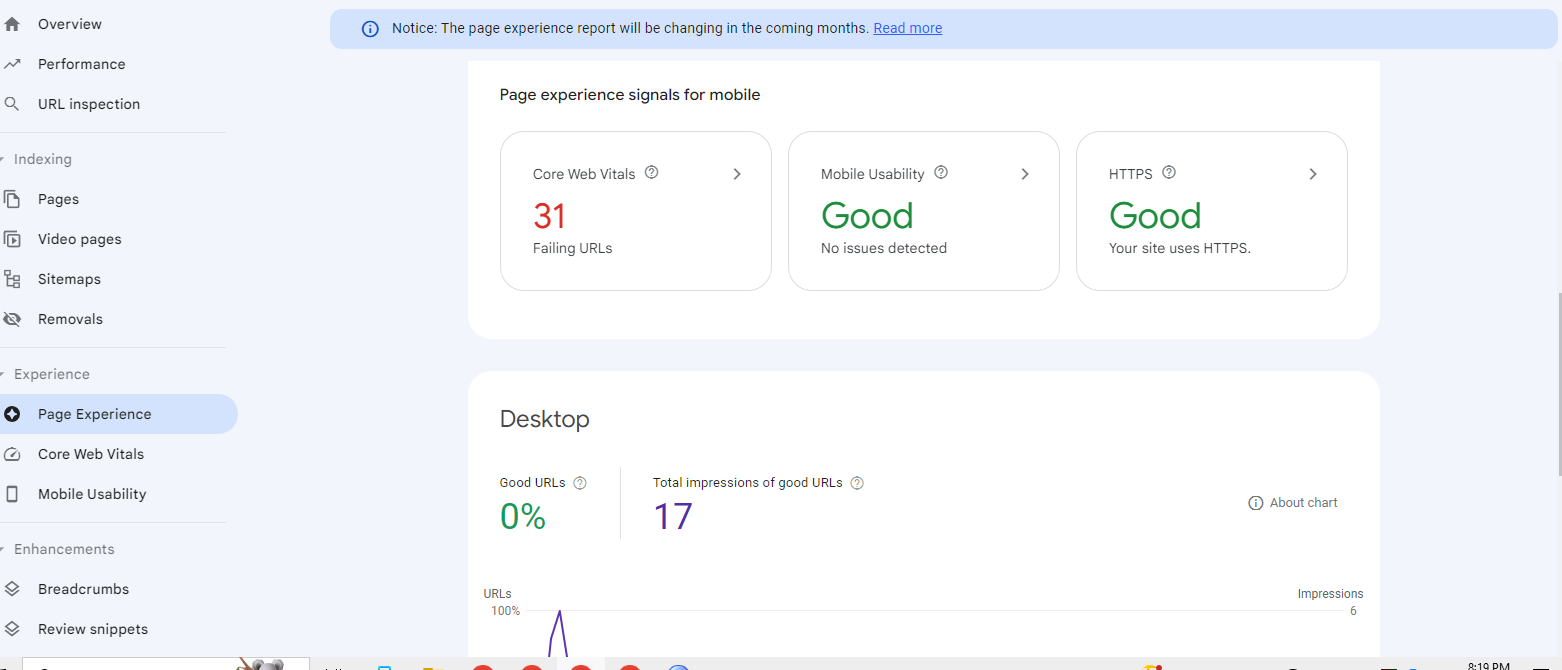 Page Experience রিপোর্টের মাধ্যমে আপনি ইউজার এক্সপেরিয়েন্স এবং ওয়েবসাইটের স্পীড সম্পর্কে তথ্য জানতে পারবেন। এখানে আপনি Core Web Vitals এবং Mobile Usability এর তথ্য পাবেন।