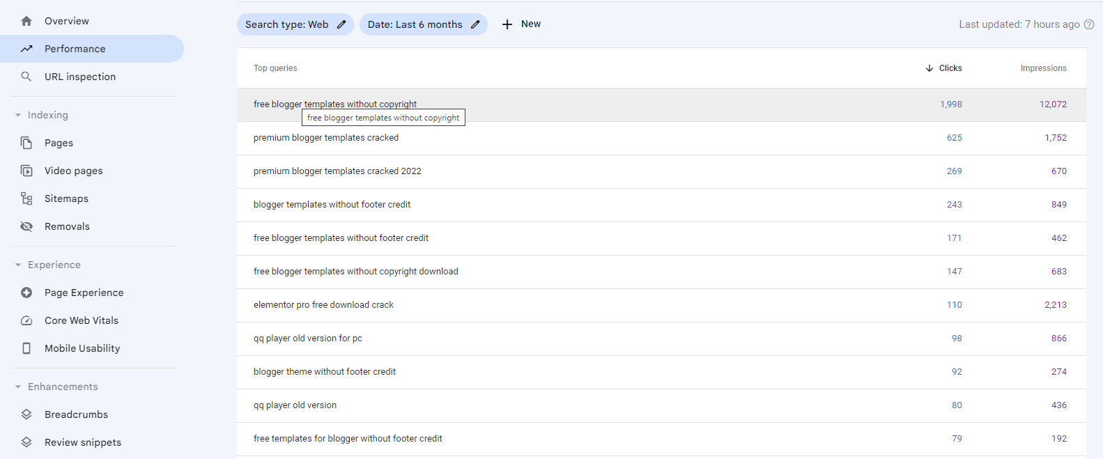 Queries, Dimensions থেকে আপনি কীওয়ার্ড গুলো দেখতে পারবেন, সার্চ রেজাল্ট ১০০০ টি পেজে আপনাকে দেখাবে। এখানে লো পারফরমিং কুয়েরি এবং হাই পারফরমিং কুয়েরি গুলো দেখতে পাবেন। কিছু কুয়েরির কম ক্লিক হতে পারে কিছু আবার হাই হতে পারে। তুলনামূলক নিচের দিকের কুয়েরি গুলো হয়তো কম সার্চ হয় অথবা আপনার ইম্প্রুভ করতে হবে। Low-Performing কীওয়ার্ড গুলোতে মাঝে মাঝে নজর দিতে হয় কারণ এখানে ইম্প্রুভ করা গেলে দ্রুত সময়ের মধ্যে ট্রাফিক বৃদ্ধি করা যায়।