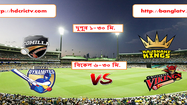 BPL ২০১৯ এর ষষ্ঠ আসরে ঢাকা পর্বের আজকের খেলা, কুমিল্লা ভিক্টোরিয়ান বনাম রাজশাহী কিংস বেলা ১:৩০ এবং ঢাকা ডাইনামাইট বনাম চট্টগ্রাম ভাইকিংস সন্ধ্যা ৬৩০ মিনিটে। সুপার ফোর যাওয়ার জন্য সব দল লড়ছে। কে হারবে?কে জিতবে? কোন দল যাবে সুপার ফোরে?