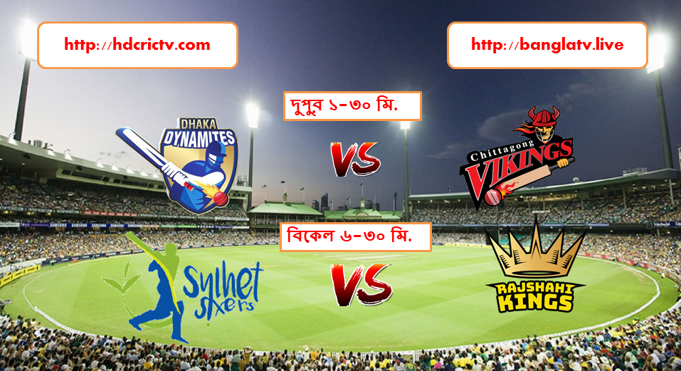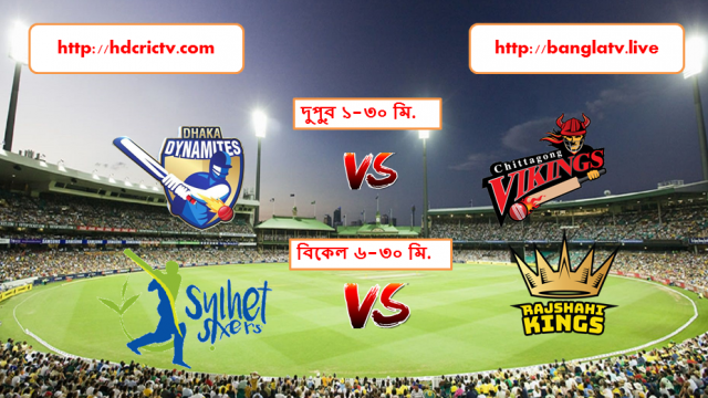 বিপিএল ২০১৯ আজকের খেলা চিটাগাং ভাইকিংস বনাম ঢাকা ডাইনামাইট ১:৩০ মিনিটে এবং সিলেট সিক্সার বনাম রাজশাহী কিংস এর খেলা ৬:৩০ মিনিটে। জমজমাট লাইভ ম্যাচ উপভোগ করতে ভিজিট করুন বাংলাটিভি লাইভ এবং এইচডি ক্রিক টিভিতে