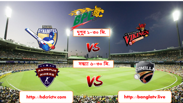 আজ বিপিএল ২০১৯ ইলেমিনেটর ম্যাচে মুখোমুখি হচ্ছে ঢাকা ডাইনামাইট বনাম চিটাগাং ভাইকিংস দুপুর ১:৩০ মিনিটে এবং রংপুর রাইডারস বনাম কুমিল্লা ভিক্টোরিয়ান সন্ধ্যা ৬:৩০ মিনিটে।