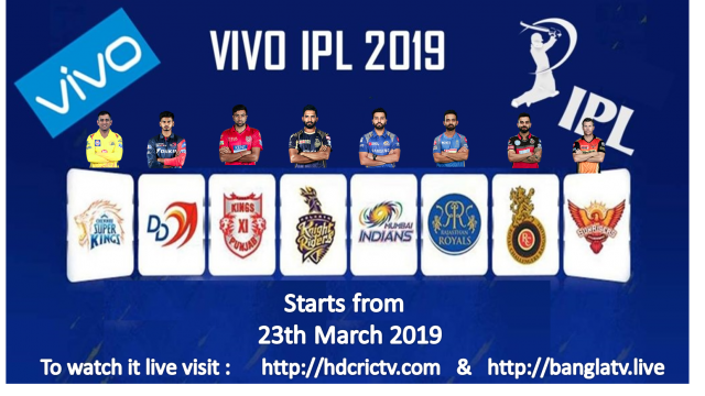 আগামী ২৩ই মার্চ ২০১৯ থেকে শুরু হচ্ছে আইপিএলের ১২ তম আসর। খেলা গুলো সরাসরি দেখতে চোখ রাখুন ঃ