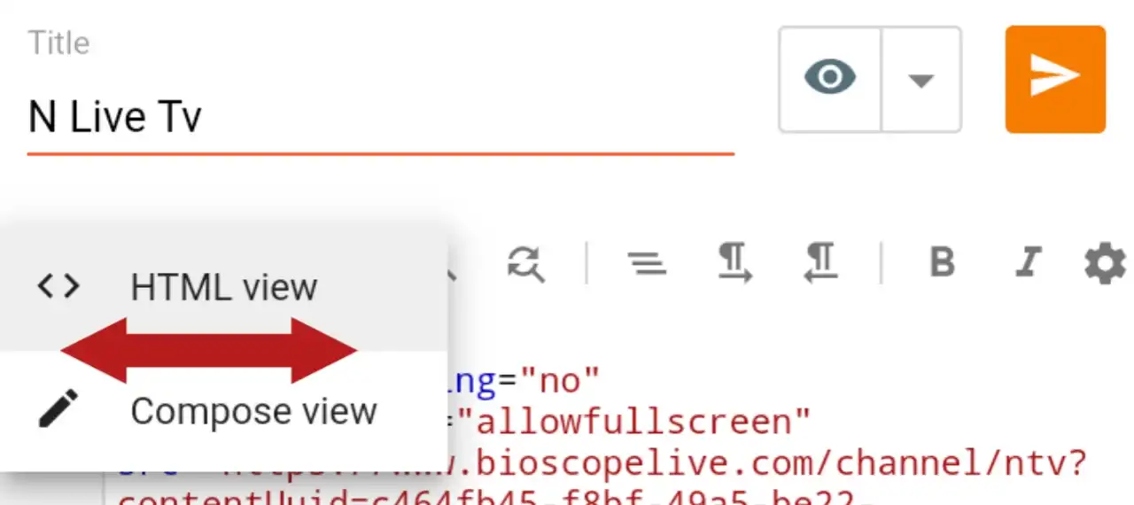 অর্থাৎ আপনি ব্লগার একটি ওয়েবসাইট তৈরি করতে পারেন কিংবা আপনার রয়েছে। এবার আমরা এই ব্লগার ওয়েবসাইটে সরাসরি বাইস্কোপ প্লাটফর্ম এর লাইভ টিভি (এন টিভি) বসাবো। এই বসানোটা হয়ে গেলে আমাদের আর্টিকেল এর মূল উদ্দেশ্য সম্পূর্ণ হবে।