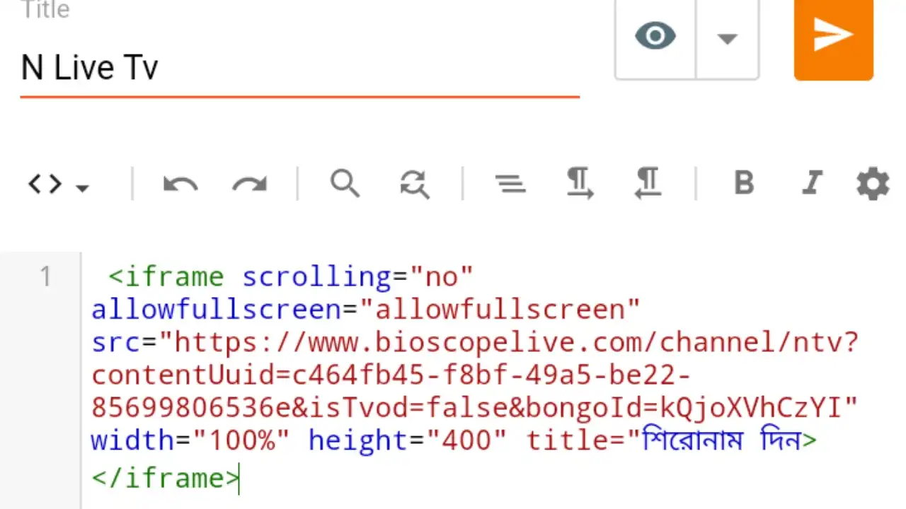 ফলাফলঃ দুটি সঠিকভাবে একসাথে করে এইচটিএমএল মুডে নিজের ব্লগার ওয়েবসাইটে পেজে অথবা টিউনের ভিতর রাখা। পাবলিশ করার উপযোগী হলে সরাসরি পাবলিশ করে দিলে ফলাফল, হিসেবে N লাইভ টিভি দেখতে পারবেন আশাকরি!