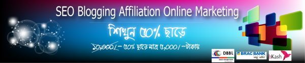 চলছে রেজিস্ট্রেশন অফার । এই অফারে "অনলাইন ইস্কুলে"র যেকোন ব্যাচে মাত্র ৩০০০/- টাকায় SEO এবং Blogging শেখার সুযোগ রয়েছে। ১ মাসের কোর্স। সপ্তাহে ৩ দিন ক্লাশ।