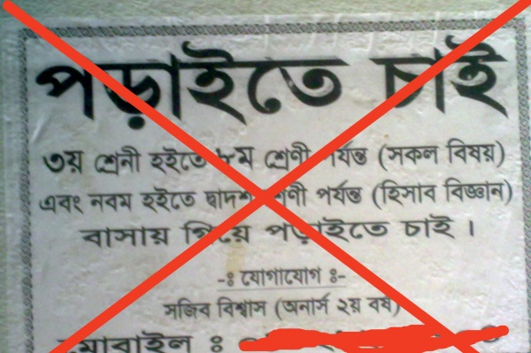 আর নয় লিফ-লেট!!! পড়াতে চাই/ পড়াব/ তথ্য প্রযুক্তির সাথে তাল মিলিয়ে টিউটর ও টিউশনি এবং বেচা-কেনা বিষয়ক ওয়েব সাইট - খোঁজ-খবর.কম http://www.khuj-khobor.com এই সাইটে সারা বাংলাদেশের শিক্ষক শিক্ষিকাদের তথ্য পাওয়া যাবে এবং শিক্ষক শিক্ষিকারা রেজিট্রেশন করে তাদের তথ্য (প্রোফাইল) এন্ট্রি করতে পারবে। অবিভাবকরা গৃহ শিক্ষক শিক্ষিকার প্রয়োজনে খোঁজ-খবর.কম থেকে খুঁজে পাবেন যোগ্য গৃহ শিক্ষক শিক্ষিকাদের এরিয়া ভিত্তিক যোগাযোগের ঠিকানা (প্রোফাইল) এই সাইটে বিভিন্ন সেবার সেবার পাশাপাশি স্কুল, কলেজ, মাদ্রাসা, কিন্ডার গার্ডেন, কোচিং সেন্টারের শিক্ষক শিক্ষিকা নিয়োগ বিজ্ঞপ্তি দেওয়া ও পাওয়া যাবে।
