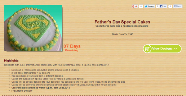 আমাদের দায়িত্ব দিন। সুন্দর একটা কেক অর্ডার দিন আমাদের কে। পৌঁছে দেব আপনার বাবা'র কাছে ঠিক বাবা দিবসে, আপনার হয়ে।