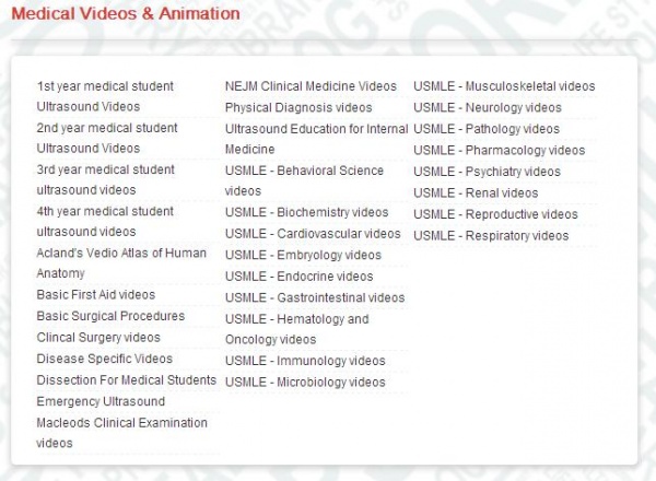 ই-বুক এর সমৃদ্ধ কালেকশান ছাড়াও এখানে রয়েছে মেডিক্যাল সেবা সংক্রান্ত অসংখ্য ভিডিও ও এনিমেশান ফাইল। এখানে আছে বিভিন্ন পরীক্ষা-নিরীক্ষা সংক্রান্ত অনেক গুরুত্তপূর্ন ভিডিও যা দেখে আপনি ডিজিটাল হাসপাতালের এই প্রতিষ্ঠানটিকে চমৎকার না বলে থাকতেই পারবেননা। দেখুন এই চমৎকার ভিডিওগুলোর তালিকা-