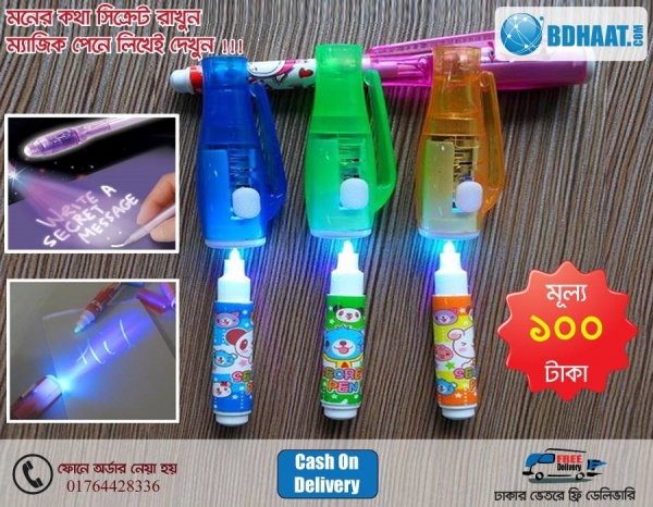 এই কলমে ইউ ভি কালি ব্যাবহার করা হয়েছে যা খালি চোখে দেখা যায় না কিন্তু ইউ ভি আলো ব্যাবহার করলে তা সুস্পষ্ট দেখা যায়। আপনি আপনার ব্যবহৃত জিনিস পত্রে গোপন চিহ্ন একে দিতে পারেন এই কলম ব্যবহার করে।