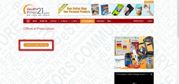 লগিন হয়ে গেলে "To add a prescription click here" এ ক্লিক করুন।