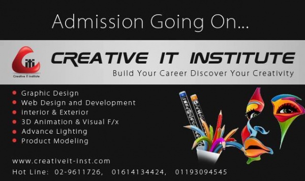 যেকোন পরিসংখ্যান অনুযায়ি এ মুহুর্তে দেশের সেরা আইটি ট্রেনিং প্রতিষ্ঠান ক্রিয়েটিভ আইটি ইনস্টিটিউট। এ প্রতিষ্ঠান হতে কোর্স করে শুরু করুন প্রফেশনাল ক্যারিয়ার।