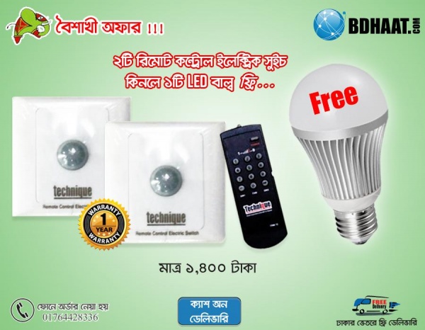 ২টি রিমোট কন্ট্রোল ইলেক্ট্রিক সুইচ কিনলে ১টি বাল্ব ফ্রি...