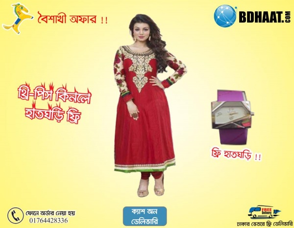 এবার বিডিহাট থেকে থ্রি-পিস কিনলে সাথে পাচ্ছেন একটি হাতঘড়ি ফ্রি...