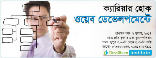 তাই যারা ওয়েব ডেভেলপার হিসেবে ক্যারিয়ার গড়তে চান তাদের জন্য ৪ মাসব্যাপি প্রফেশনাল ওয়েব ডেভেলপমেন্ট প্রশিক্ষণের আয়োজন করেছে ডেভসটিম ইনস্টিটিউট।