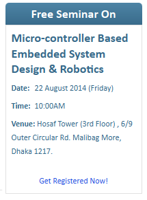 এমবেডেড সিস্টেম, ও মাইক্রোকন্ট্রোলারের প্রতি নতুনদের মধ্যে আগ্রহ তৈরির লক্ষ্যে এবং এ ধরনের টেকনোলজিকে সহজলভ্য করার উদ্দেশ্যে টেকশপবিডি.কম ফ্রি সেমিনার ও ওয়ার্কশপের আয়োজন করে থাকে। ফ্রী সেমিনারে অংশ গ্রহন করতে এবং রেজিষ্ট্রেশন করতে ক্লিক করুন http://www.techshopbd.com/course-seminar-registration