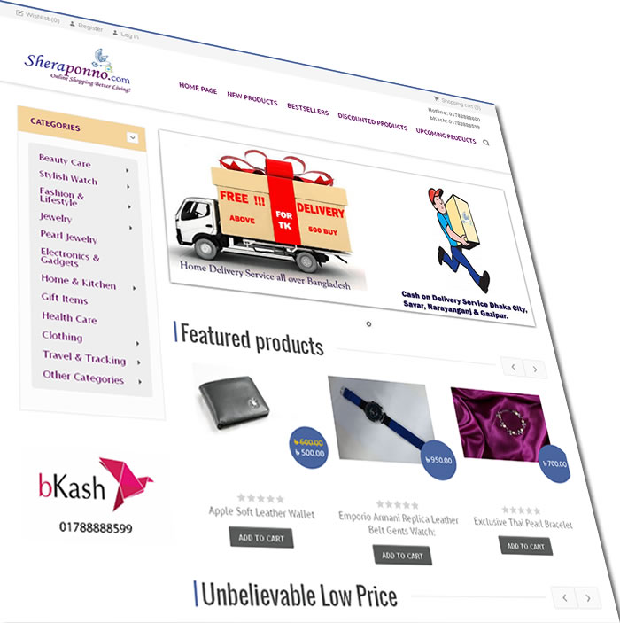 'সেরা পণ্য' আপনাকে দিচ্ছে নাম মাত্র মুল্যের কেনাকাটায় ফ্রি হোম ডেলিভারি সারা বাংলাদেশে। মাত্র ৫০০ টাকার কেনাকাটায় আপনি বাংলাদেশের যে কোন স্থানে পাচ্ছেন ফ্রি হোম ডেলিভারি।