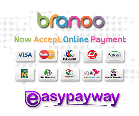 ব্র্যানো তাদের সাইটে ক্যাশ অন ডেলিভারি এবং বিকাশ ছাড়াও নতুন আরো একটি পেমেন্ট অপশন চালু করেছে, তা হচ্ছে অনলাইন পেমেন্ট। এই সুবিধাটি ব্র্যানো EasyPayWay (www.easypayway.com) এর সাথে কর্পোরেট চুক্তির মাধ্যমে হয়ে চালু করেছে। এখন থেকে ব্র্যানোর সমস্থ গ্রাহক তাদের কেনাকাটা যে কোন ডেবিট অথবা ক্রেডিট কার্ডের মাধ্যমে করতে পারবে। এই সুবিধাটি চালু করার মাধ্যমে ব্র্যানো এখন তার গ্রাহকের জন্য পেমেন্ট সুবিধার নতুন একটি দিক চালু করল।